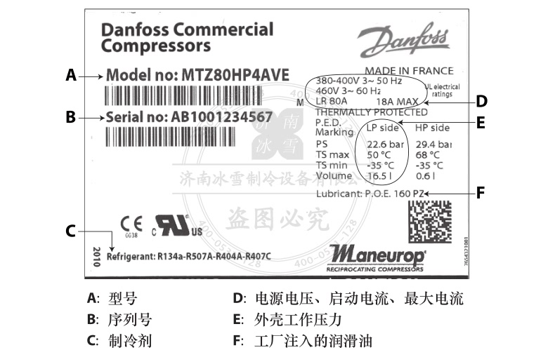 批發零售原裝進口法國制造丹佛斯Maneurop/美優樂活塞壓縮機120F0090,NTZ系列,單機設備,230V/1/50Hz,制冷劑:R404A/R507A,制冷量:2900W,提供美優樂壓縮機120F0090型號、規格、參數、圖片、價格等數據。